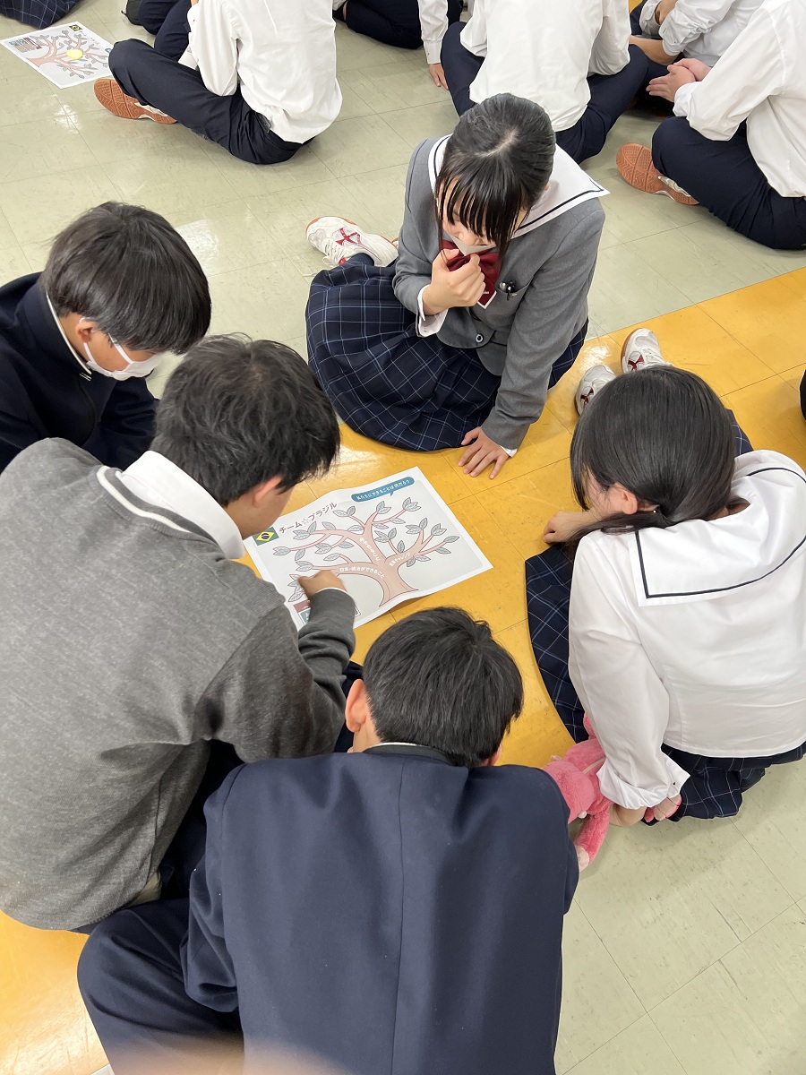 クラスごとに班が分かれ、「ガーナ班」「ブラジル班」として、産地の特色や課題を考えながらアイデアを出し合いました。