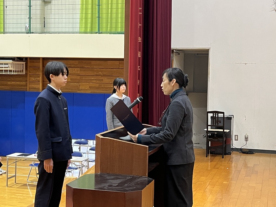 式では、竹井教頭からのお話と表彰伝達が行われ、2学期の取り組みを振り返る時間となりました。