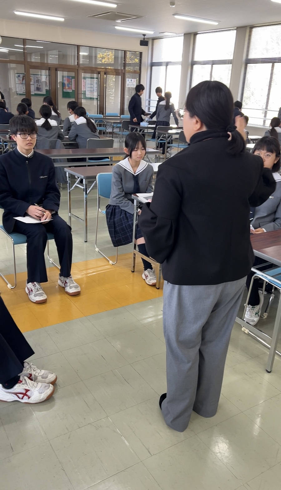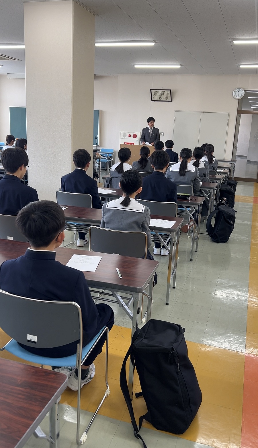 年内最後のHRでは、各クラスで担任から冬休みの過ごし方についての話があり、生徒たちは落ち着いた様子で話を聞いていました。