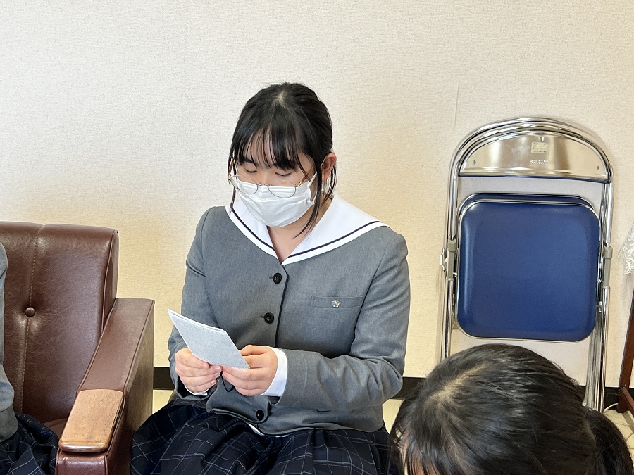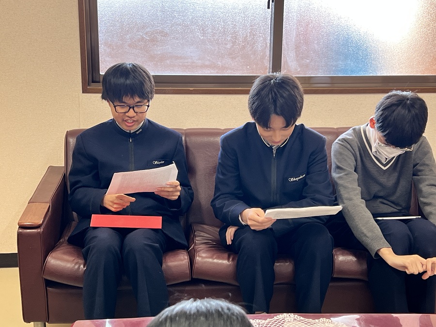 昼休みに、読み手を務める生徒たちが練習をしていました。
