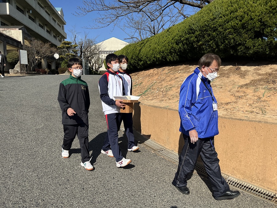 なお、最初についたお餅を使って、それぞれ二つの鏡餅を作りました。一つは本学に設置されている筑紫神社へ、もう一つは受験真っ只中の高校3年生の合格を祈願するために、3年生の階に置きました。